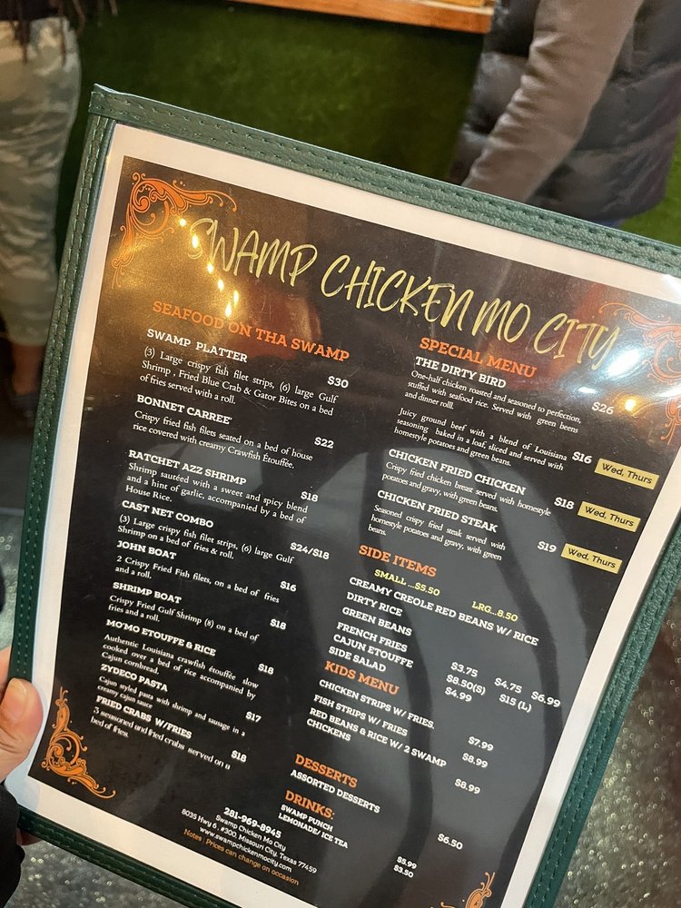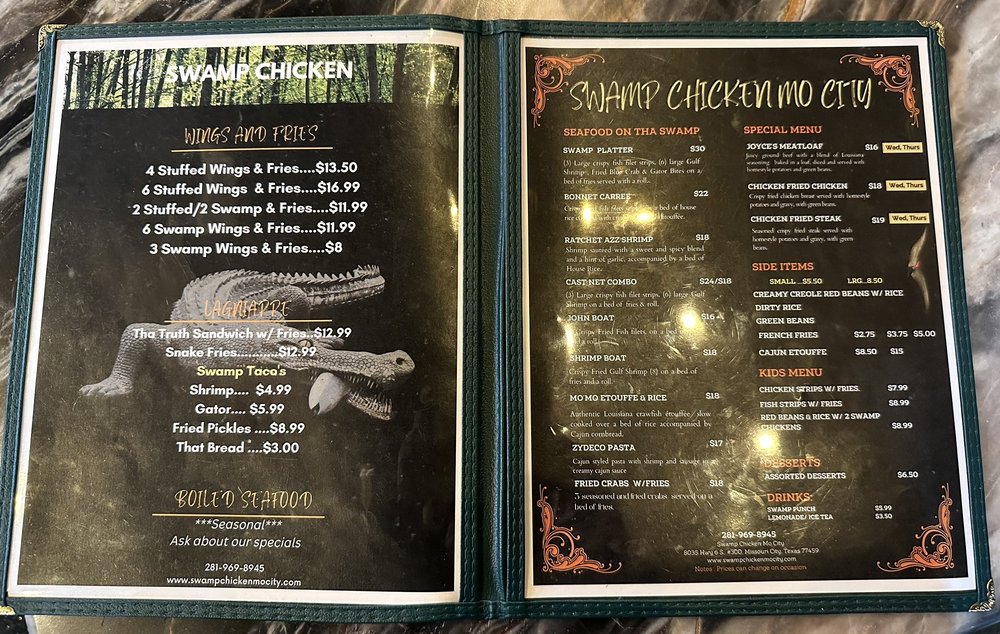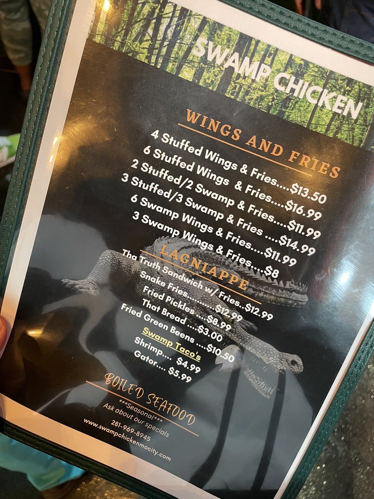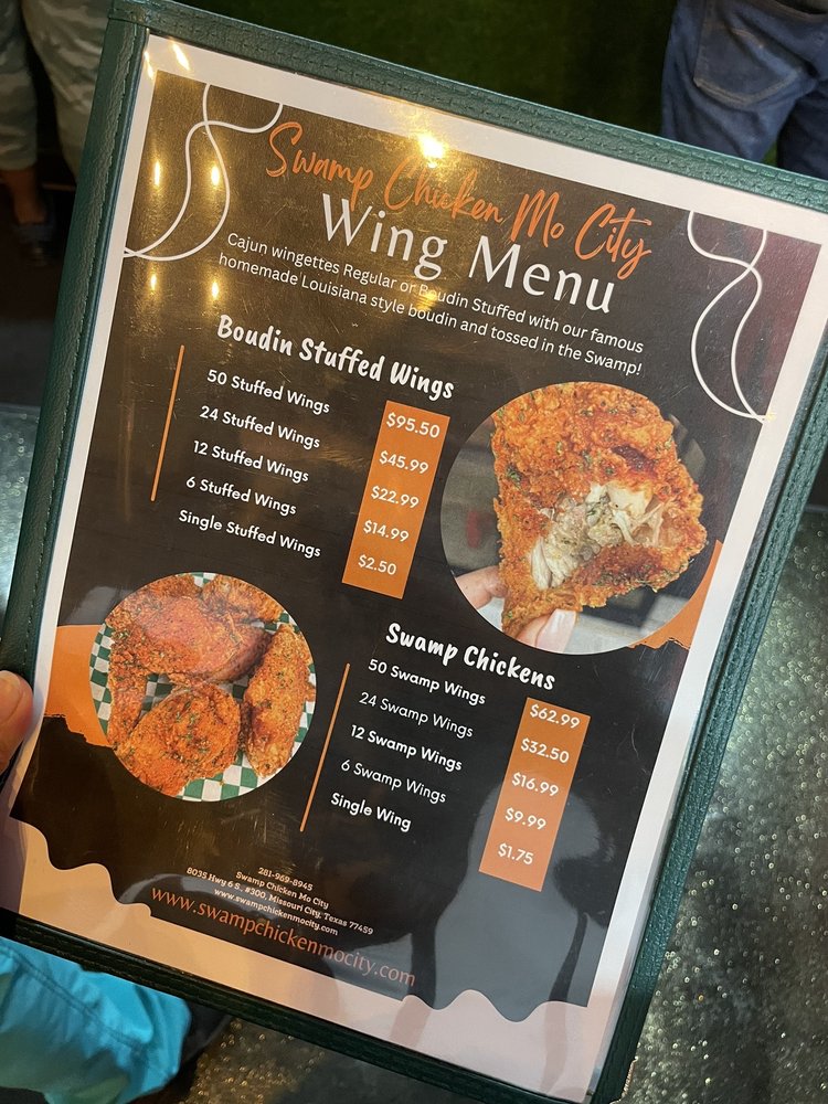 Swamp Chicken brings the flavors of Cajun/Creole cuisine to Missouri City, TX. Customers rave about the flavorful wings, beignets, stuffed wings, and fries. The cozy and laidback atmosphere, accompanied by friendly service, adds to the dining experience. Some highlights include the well-seasoned and crispy swamp chicken, delicious stuffed wings, and flavorful fries. While some customers wished for colder drinks or less breading on the wings, overall, the feedback is positive. The menu offers a variety of seafood dishes like the shrimp boat, fried crab, and fried fish, all served fresh and hot. The only downside noted by some customers was the loud music, but it added to the lively Friday evening vibe. Overall, Swamp Chicken is a recommended spot for those looking to try authentic Cajun/Creole cuisine with a New Orleans twist.